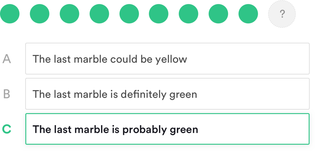 Talent Q: Talent Q’s logical reasoning test presents patterns of symbols and asks you to determine what comes next. The test is adaptive – meaning it gets harder as you answer correctly – and includes more answer options than most other tests (up to 14 per question).