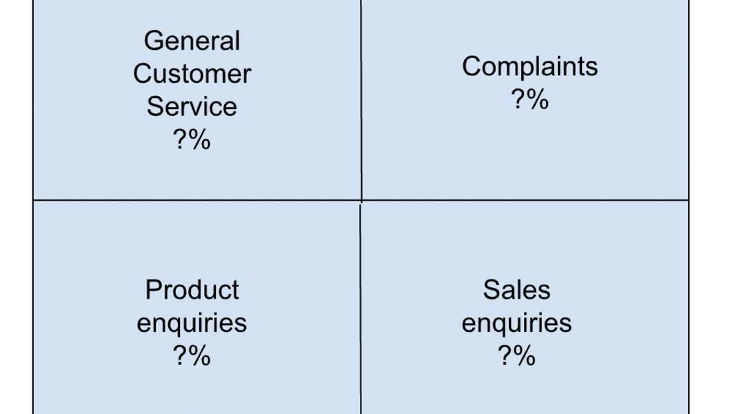 A furniture company has 550 customer service inquiries per week. Amend the table below according to the correct percentage of inquiries